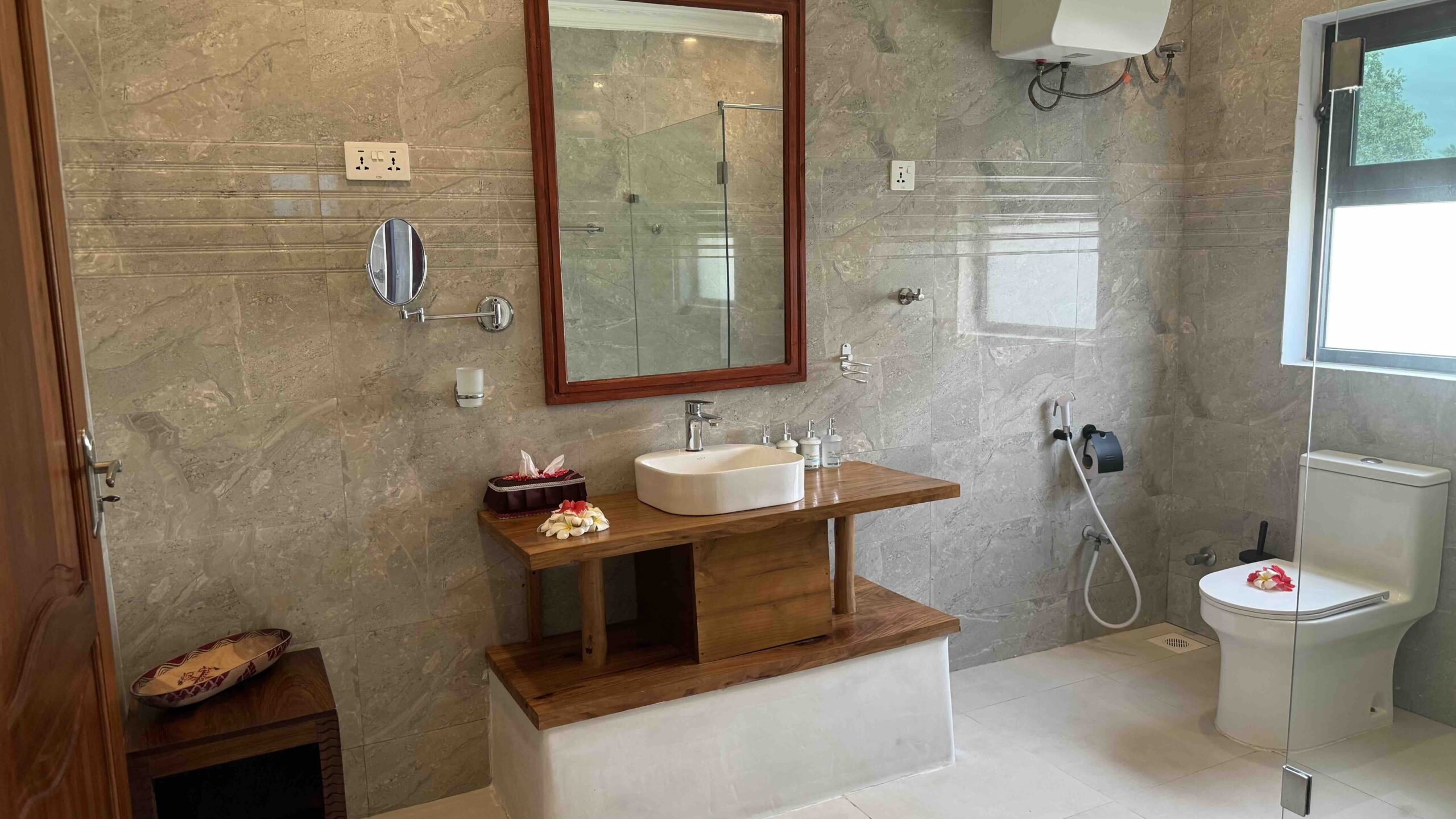 Guest safety and comfort are prioritized with the inclusion of window mosquito nets, air conditioning and ceiling fans. This is a non-smoking suite.